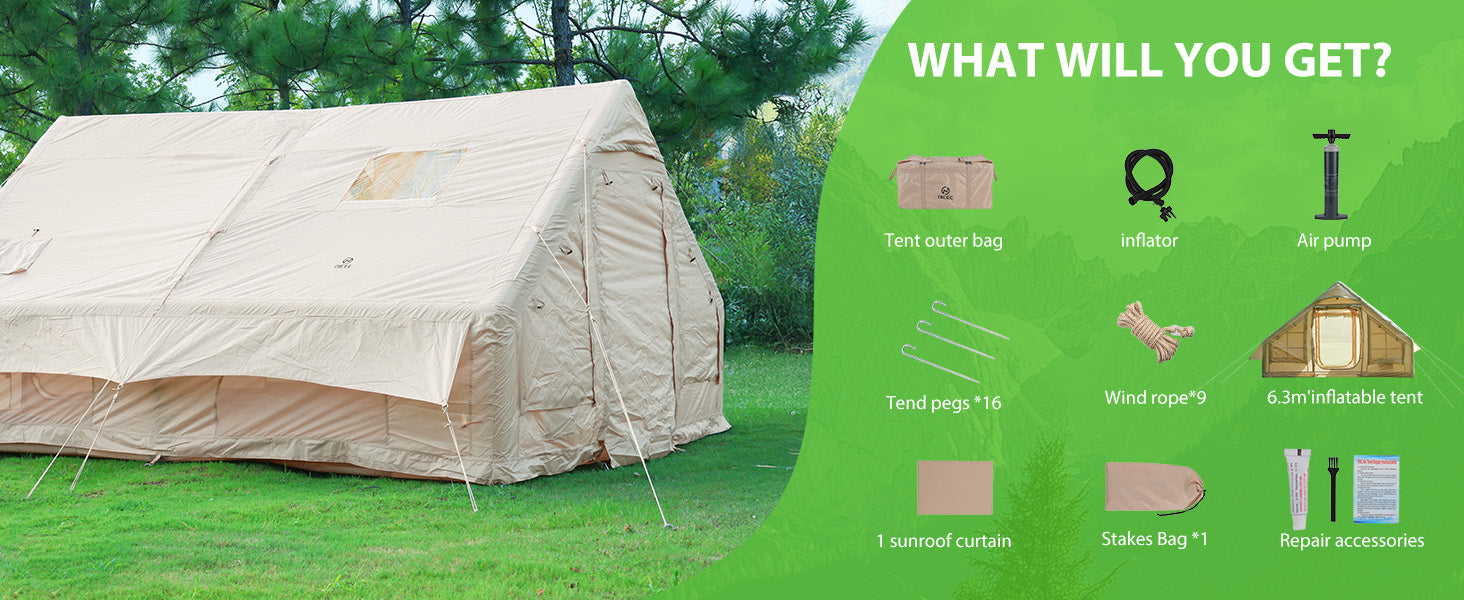 📦 Complete Package: Includes pump, tent bag, 22 ground nails, repair kit, and setup guide.