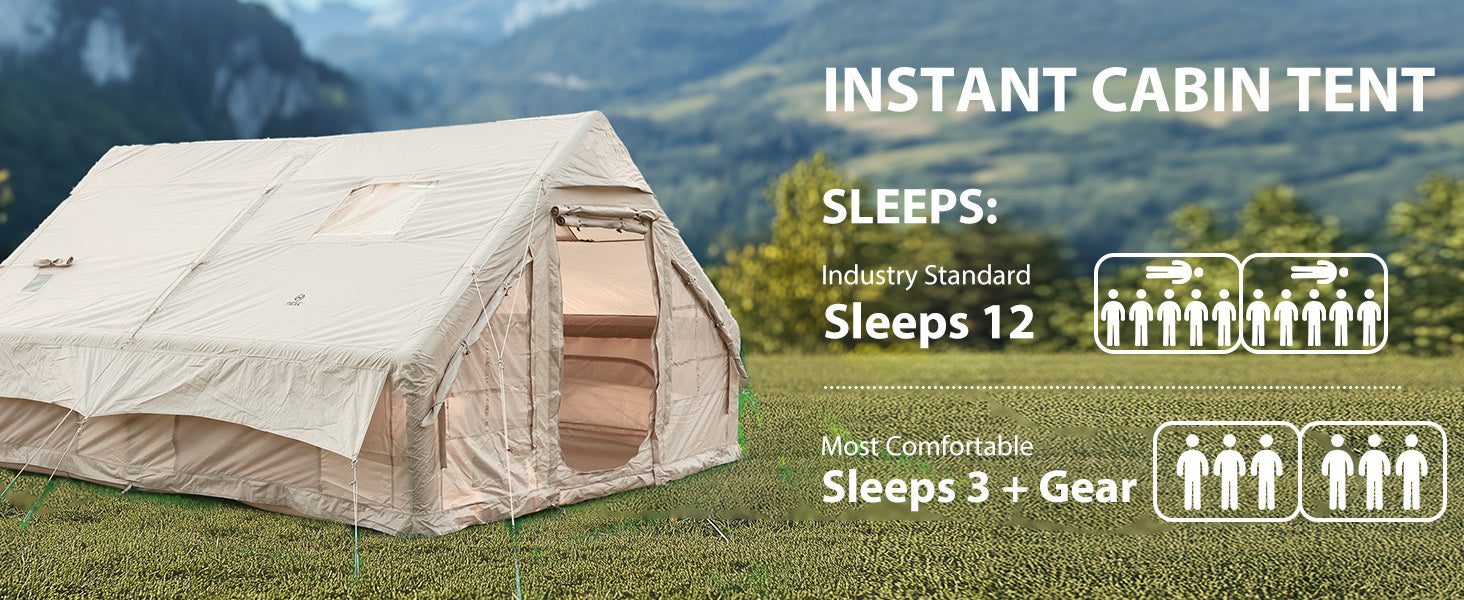 🏕 Spacious Interior: 155.5" L × 119.7" W × 79.5" H, fits 12 people or a king-size mattress with gear.