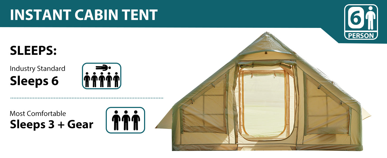 This inflatable tent comfortably accommodates 6 people and can easily fit a king-size air mattress.