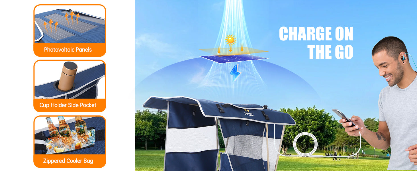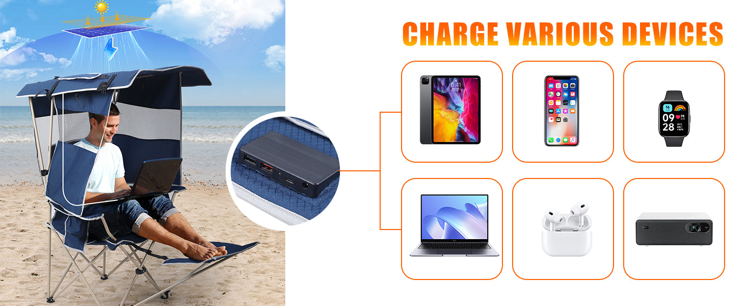Yes! The chair features a 30W solar panel with USB, Type-C, and DC ports, and all necessary charging cables are included.