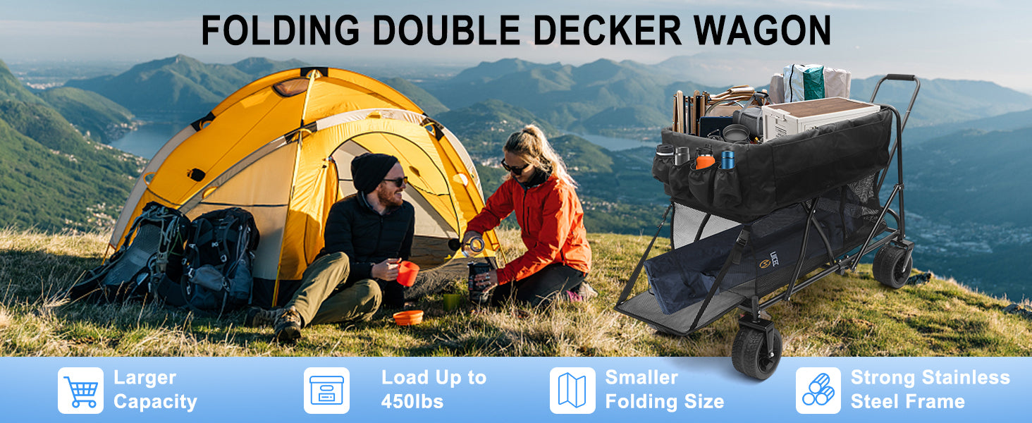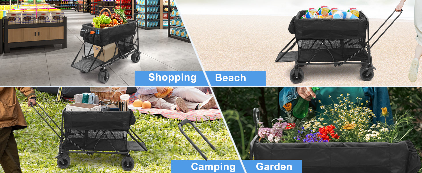 💪 Heavy-Duty & Durable – Supports up to 450 lbs with a sturdy metal frame for camping, sports, groceries, or outdoor events.