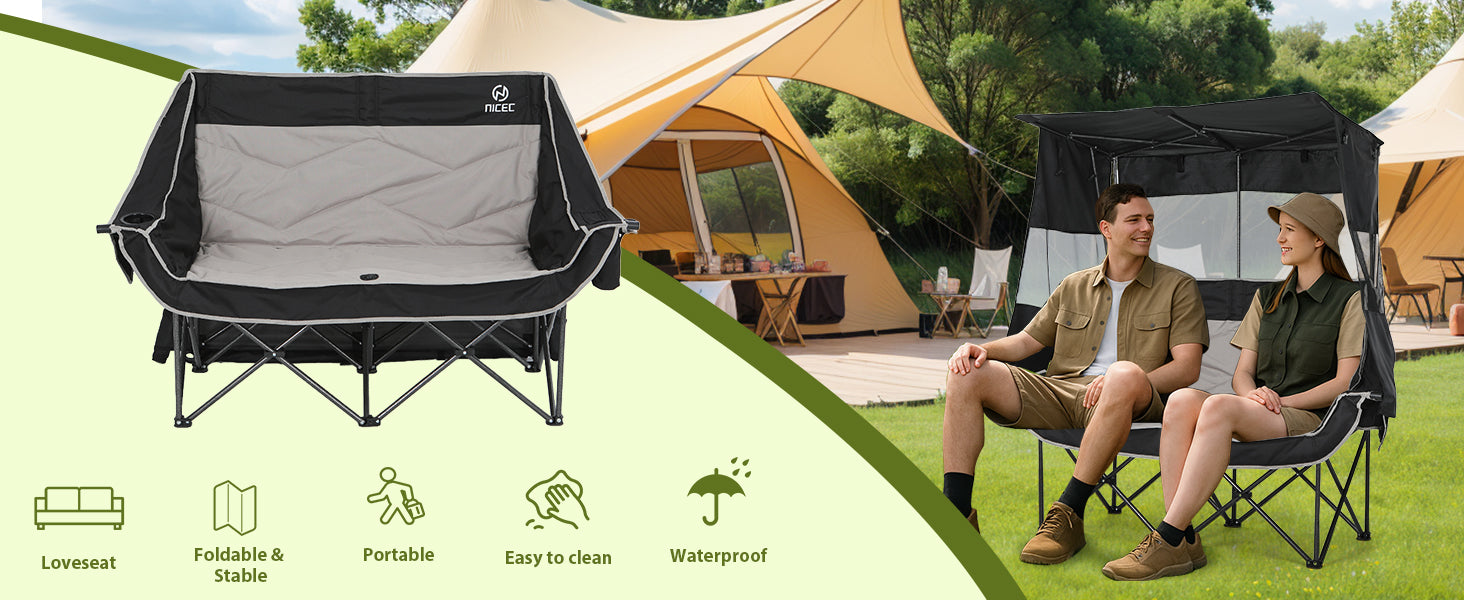 Comfortable 2-Person Seat – Extra-wide 57" padded seat with ergonomic design supports two adults comfortably.