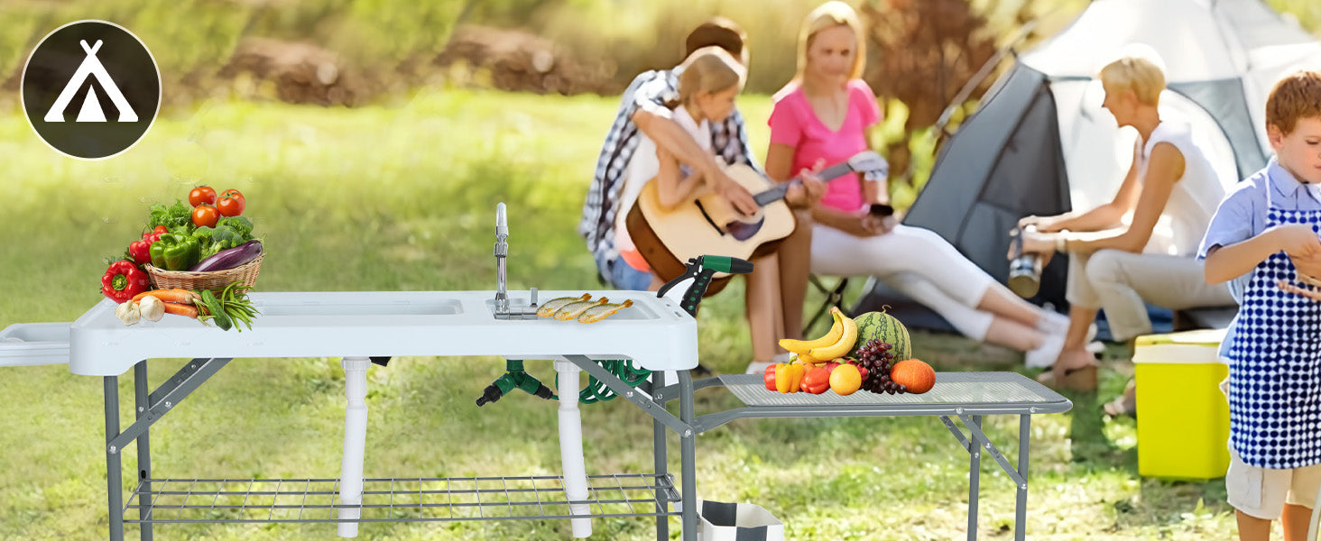 Yes! Its dual sinks, removable faucet, and durable HDPE tabletop make it perfect for outdoor cooking, cleaning fish, or as a prep station during camping and picnics.
