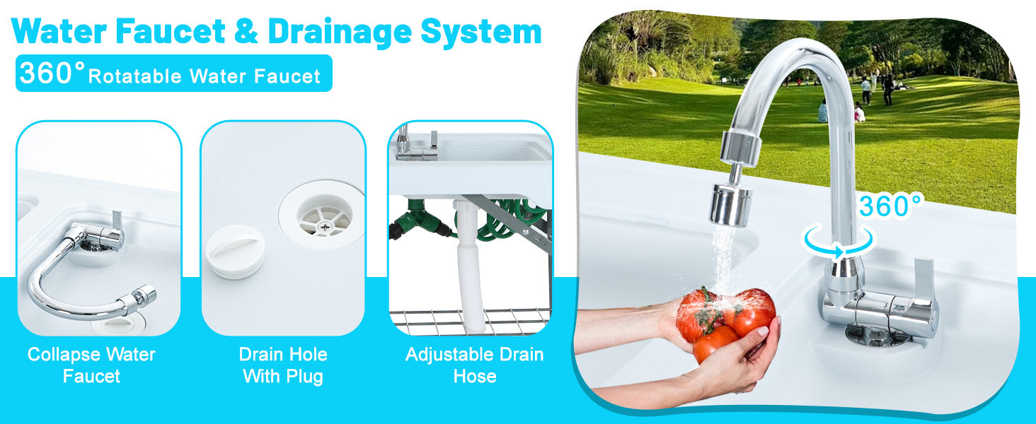 🪣 Dual-Sink Functionality: Two sinks plus a 360° rotatable spray faucet for easy cleaning.