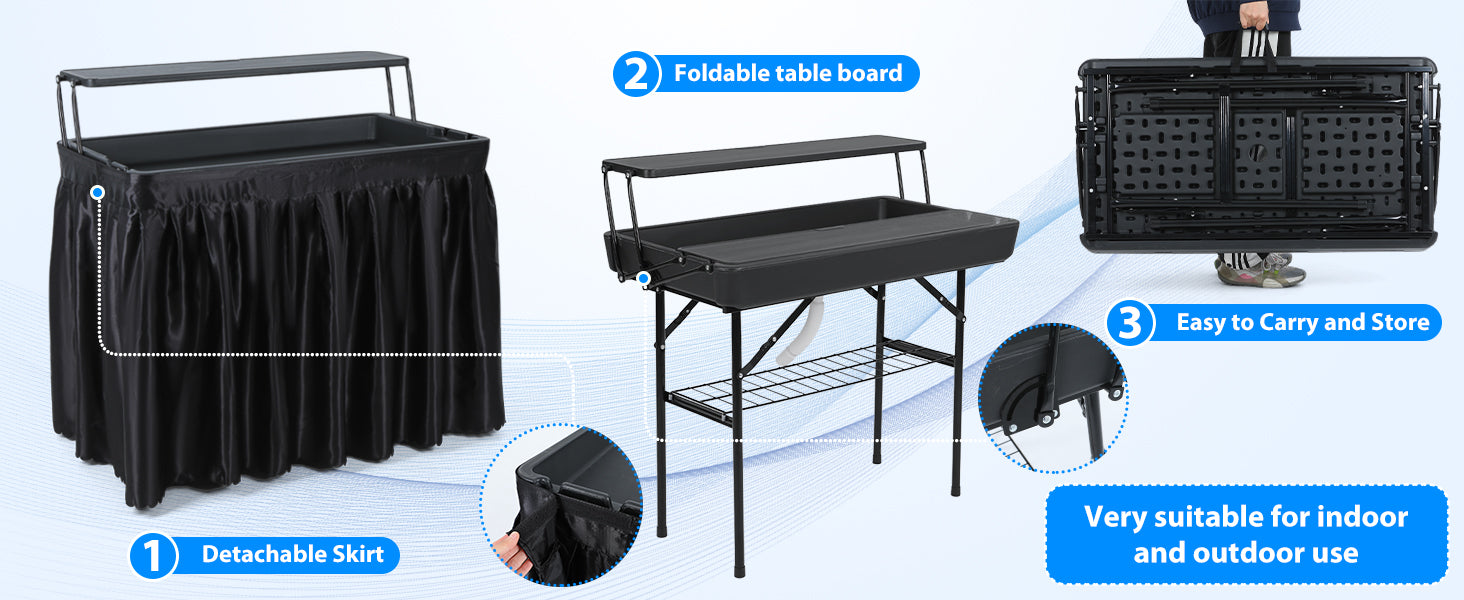 🍽️ Multi-purpose Table – Perfect for keeping drinks cold, displaying food, or as a prep table.
