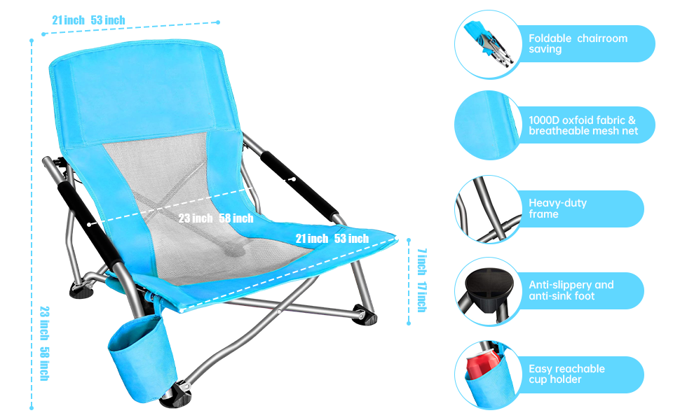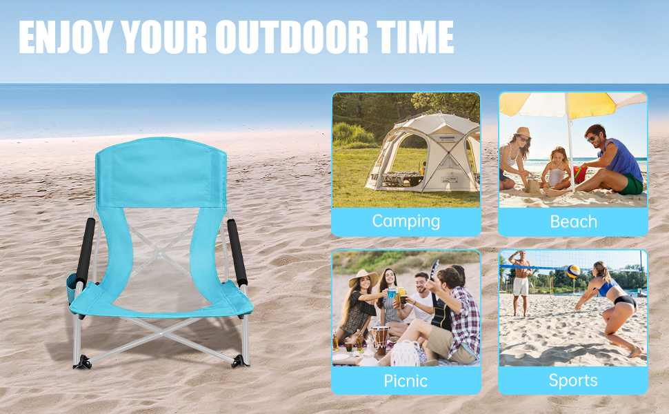 The chair folds compactly to 28”×7”×6” and comes with a carrying case, making it easy to transport to the beach, park, camping, or concerts.