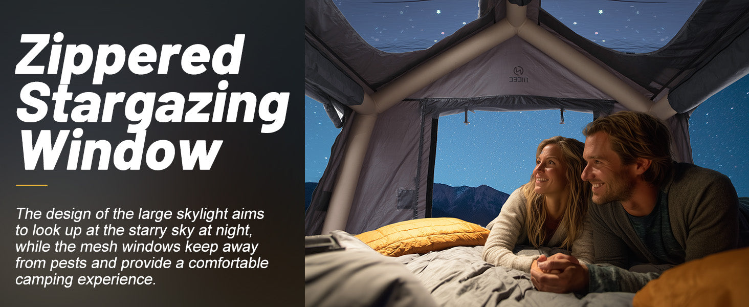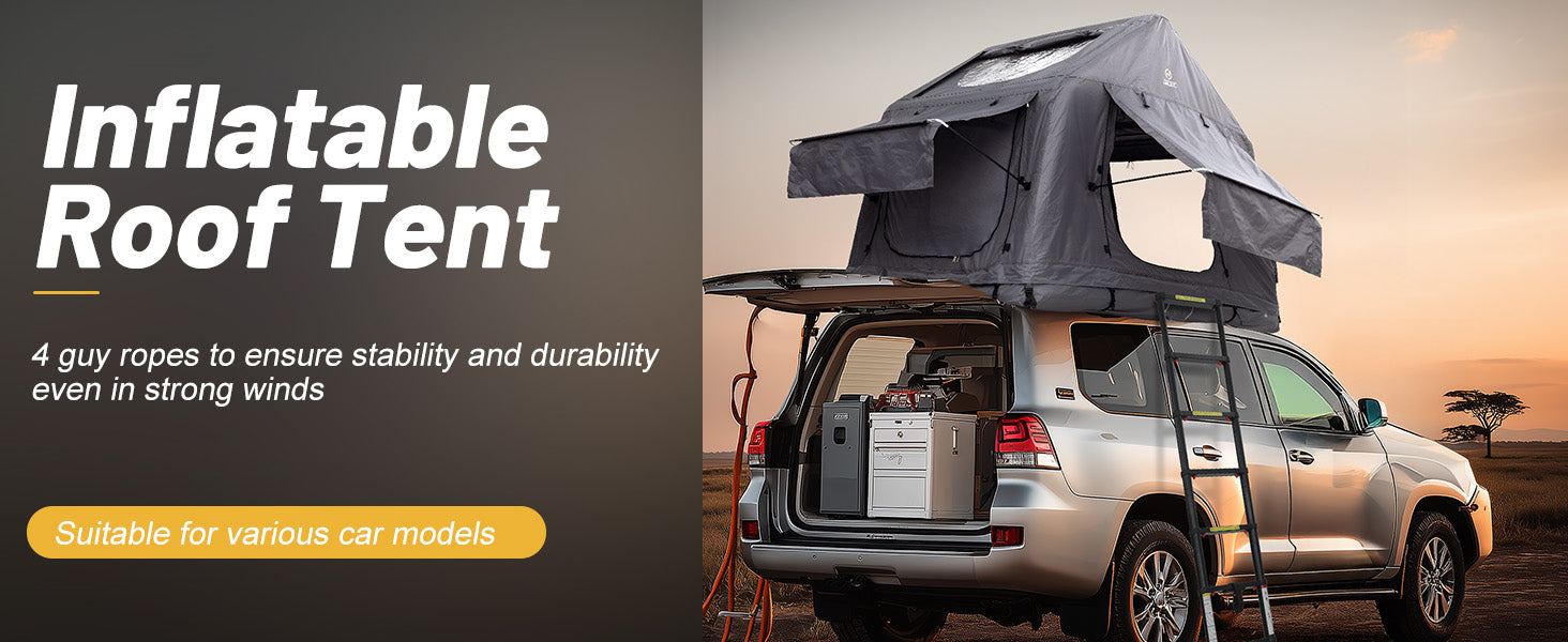 The inflatable design allows quick setup—simply connect the air pump, and your rooftop tent is ready in minutes.
