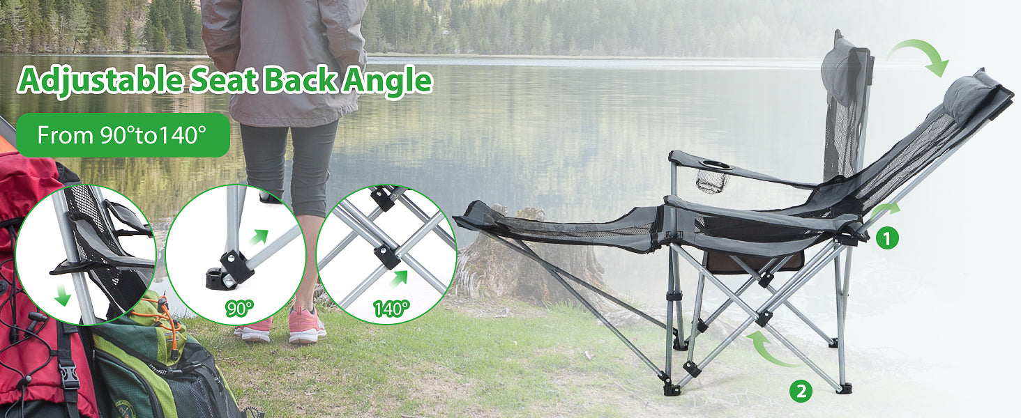 Yes. The backrest adjusts from 90° upright to 140° reclined, and the detachable footrest and headrest allow you to customize your comfort.
