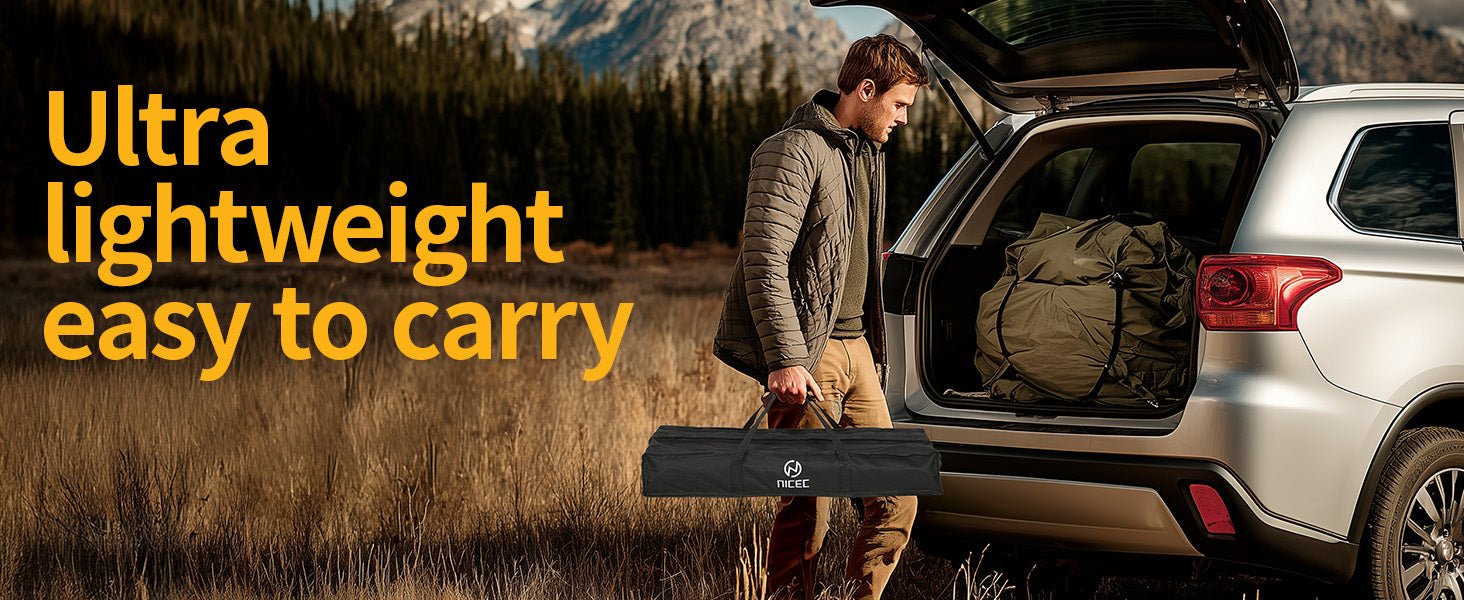 Yes, absolutely. While it's larger, the Medium model remains highly portable. It weighs only 6.28 lbs (2.85 kg) and still folds into a slim, compact carry bag (approx. 55 x 20 x 12 cm). One person can easily transport it and complete the same quick, tool-free setup in under a minute by unfolding the frame, inserting the side panels, and attaching the tabletop and mesh shelf.