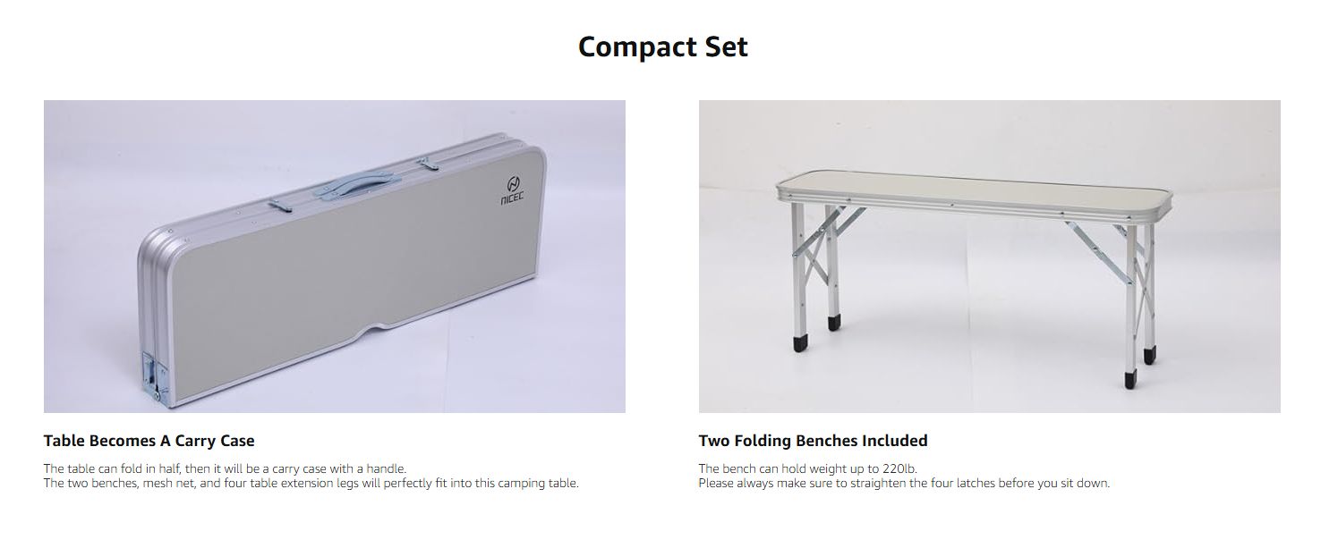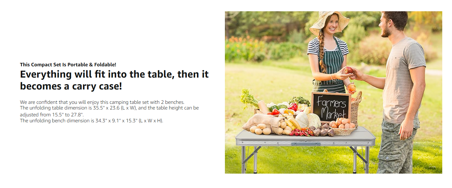 • Foldable Design: The picnic table features a convenient foldable design, allowing for easy setup and storage. Perfect for picnics on-the-go or for saving space when not in use.