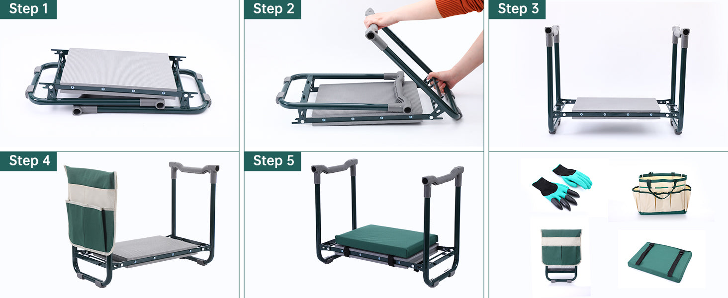 **Convenient Accessories**: Comes with a pair of gardening gloves to protect your hands, a side pocket for easy access to your tools, and a storage bag for hassle-free transportation and organization.