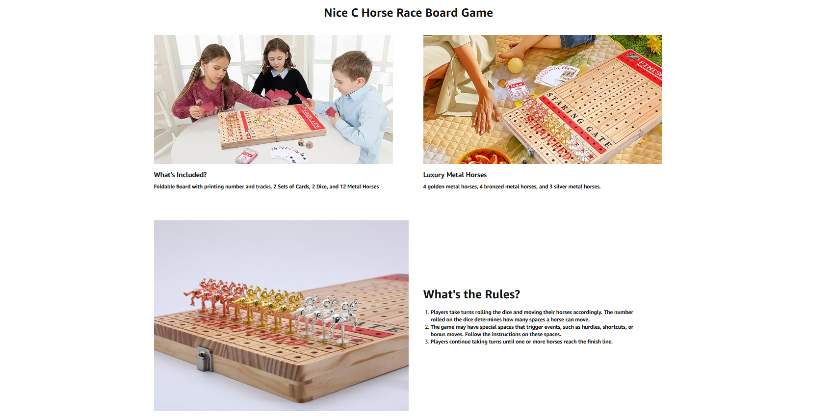 This horse board game captures the excitement of the racetrack, allowing players to experience the ups and downs of horse racing in a controlled and enjoyable setting.