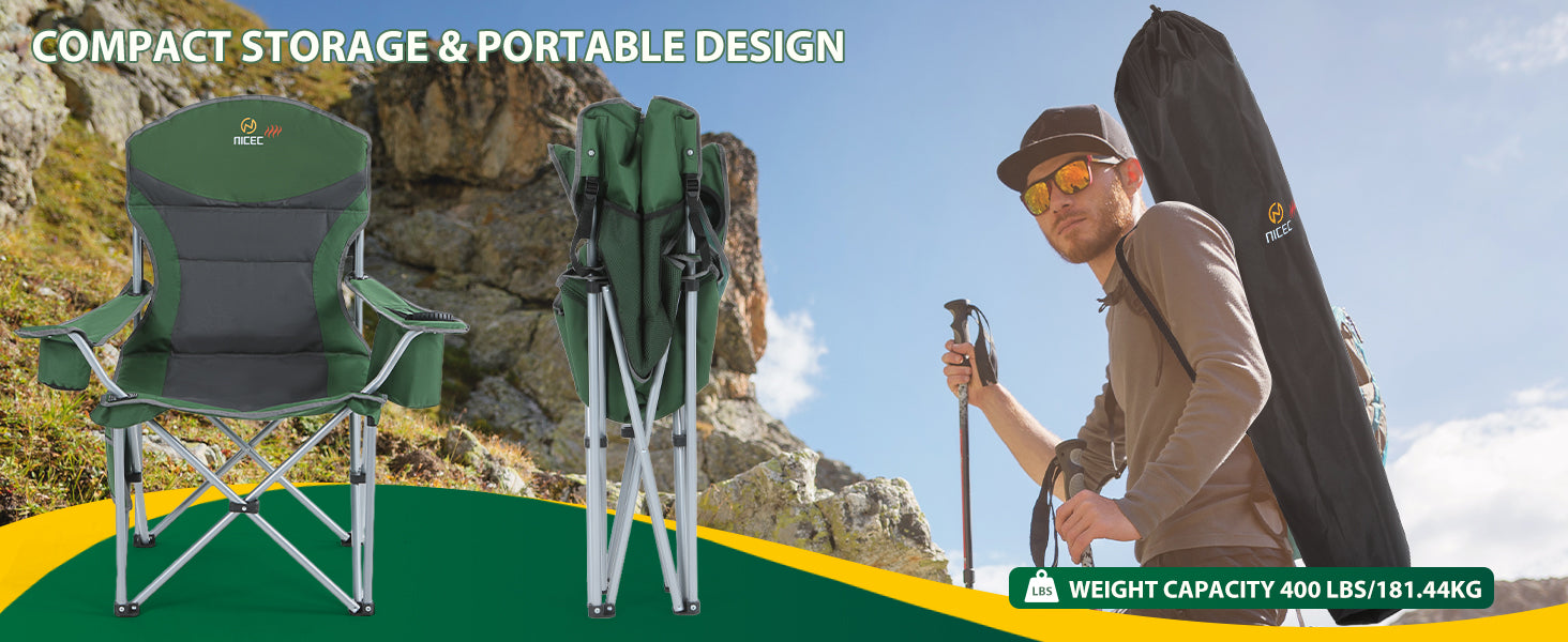 Yes! The chair’s alloy steel frame and 600D Oxford fabric support up to 400 lbs while remaining lightweight for portability.