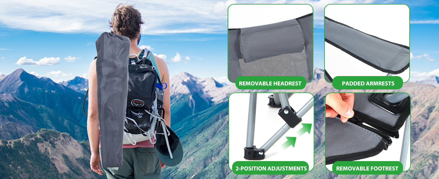 🦶 Detachable Footrest & Headrest – Customize your comfort whether at the beach or by the fire.