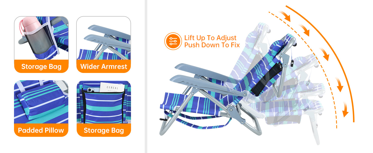 🪑 Backpack Design & Lightweight – Adjustable backpack straps for easy carrying; chair weighs only 7.7 lbs.
