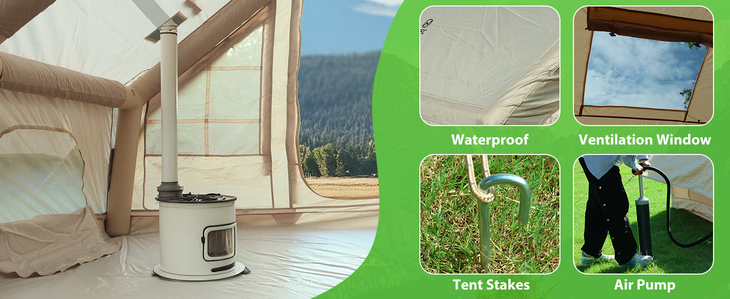 📦 Complete Package: Includes pump, tent bag, 22 ground nails, repair kit, and setup guide.